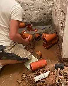 Die Lösung des Problems bestand aus zwei Schritten: Zum einen wurde das defekte Abwasserrohr durch ein neues ersetzt. Im zweiten Schritt wurden die Wände und der Boden des Kellers mit einer speziellen Abdichtungsmasse gegen Druckwasser abgedichtet.